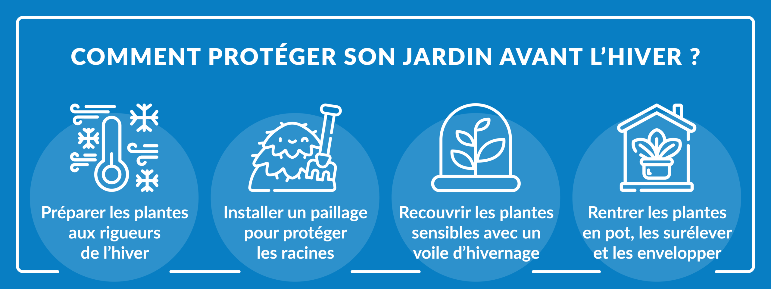 Enfin, il est essentiel de protéger les plantes en pot, car elles sont plus sensibles au gel. Regrouper les pots à l’abri, les surélever sur des palettes et les envelopper avec des matériaux isolants limite les risques de gel des racines, fissures des pots ou dessèchement de la terre…