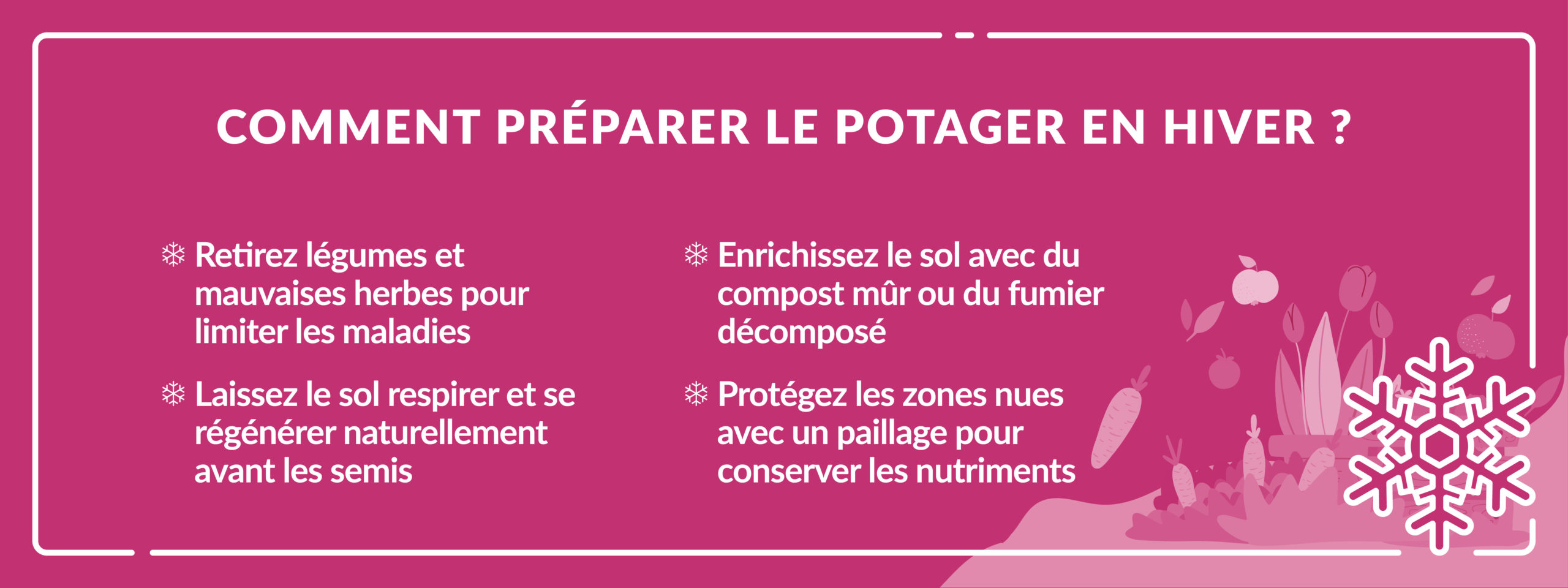 L’hiver est aussi la période idéale pour préparer le potager en vue des prochaines récoltes. Même si la terre semble au repos, un jardin en hiver bien entretenu favorise une reprise rapide et des semis plus vigoureux au printemps.
